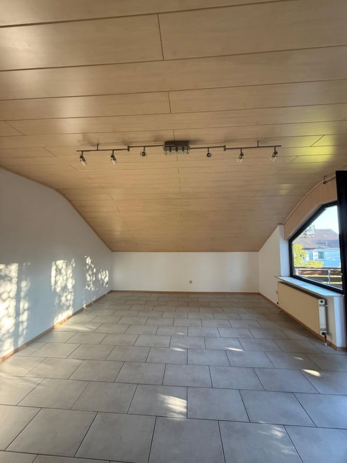 Die Dachwohnung erschließt sich über das ganze Stockwerk. Die Schrägen sind angenehm, die Wohnung insgesamt hell. Es wurden schon einige Erneuerungen vorgenommen.