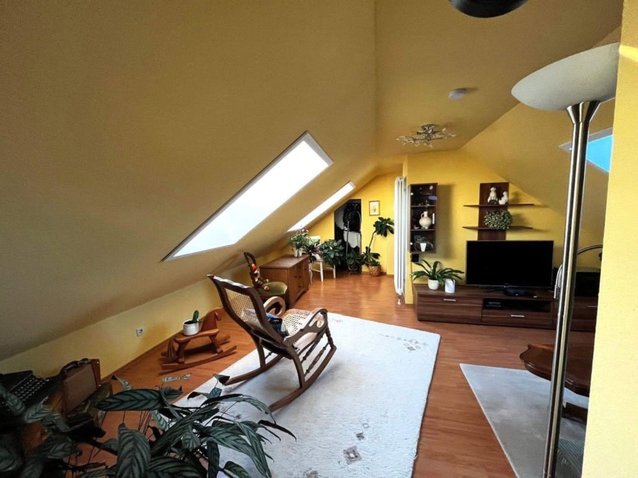 Die großzügige 3 Zimmer- Wohnung liegt im 2. OG und DG des Hauses. Liebevoll haben die Eigentümer das Domizil ausstaffiert. Die Küche macht richtig Spaß. Licht kommt genügend in die Räume.